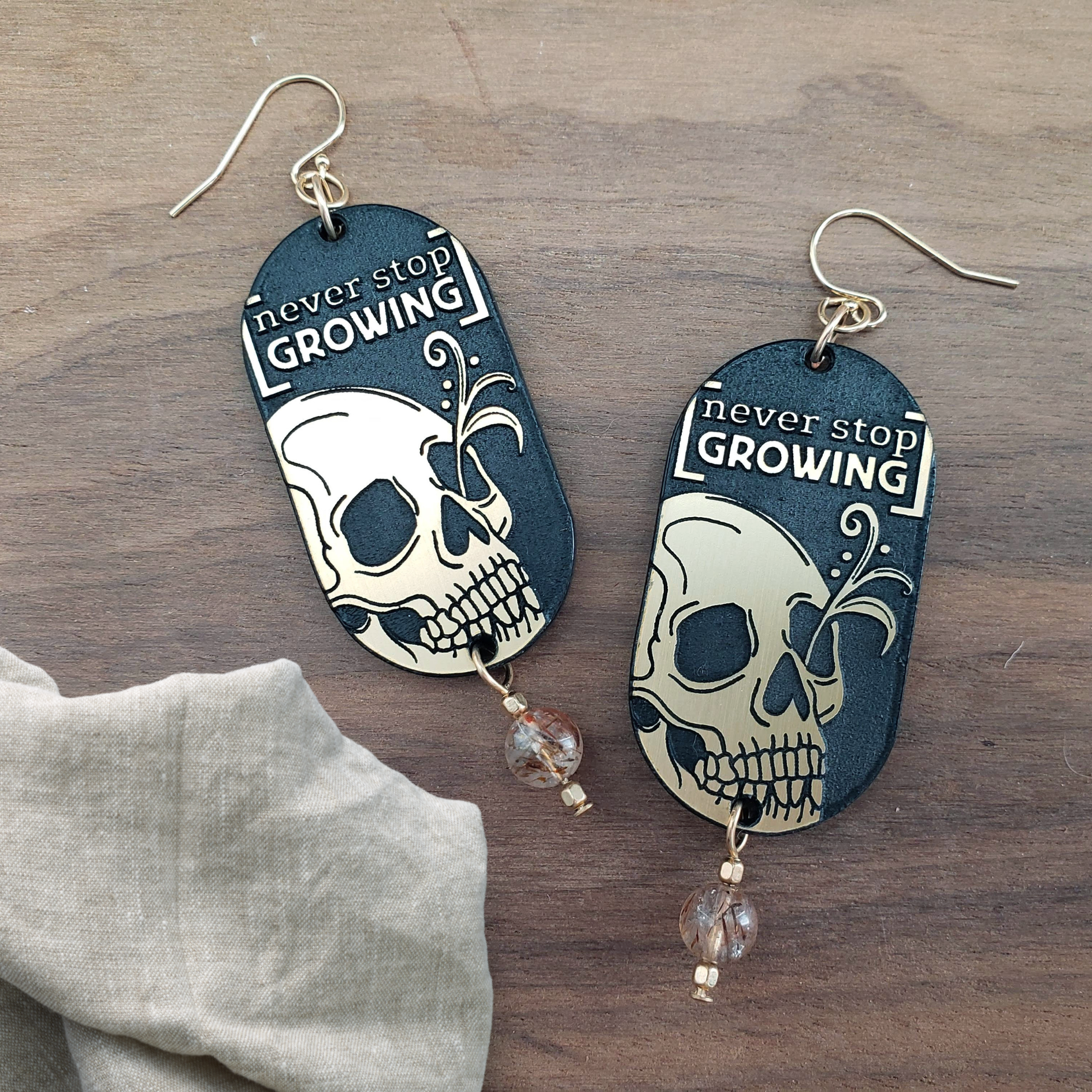 Memento mori, a Latin phrase which translates into “remember, you must die,” is an artistic, symbolic prompt to consider one’s own mortality. The memento mori tradition is rooted in the firm austerity of early philosophers and Christianity, utilizing death as a stark existential contrast to vanity and wealth. While memento mori are typically intended to be grim, our unique interpretation is a death-positive reminder to persist. Remember, you must die – but never stop growing.
